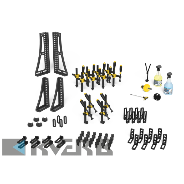 Набір підставок з 11 елементів дозволяє створити поверхню різної висоти. Підставки варіюються від 1 до 100 мм. Найнижча підставка призначена для робіт високої точності. Відповідний розмір вказано на деталі. Підставки встановлюються легко і точно за допомогою гумових кілець. Використовуються з отворами 28 системи. Різьблення М10 всередині підставок дозволяє зафіксувати специфічні елементи або призми.