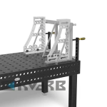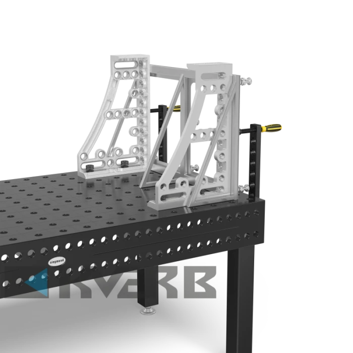 Завзятий і кріпильний кутник GK з алюмінію-титану може бути зафіксований з трьох сторін. Він був спеціально розроблений до роботи з важкими деталями. Кутник може бути використаний як для збільшення робочої поверхні, так і як упор. Міцність досягається завдяки використанню алюмінієво-титанового сплаву для упорів і куточків, спеціально розробленого для збільшення твердості. Рекомендується замовлення пари косинців.