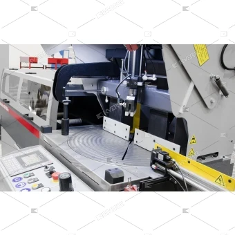 Band saw machine Bomar AL 500 ANC is designed for cutting profile and solid materials made of aluminum alloys, copper, and hard plastics at a 90° angle. The saw is equipped with a pneumohydraulic mechanism for lowering the circular saw blade to ensure high cutting accuracy and efficiency.