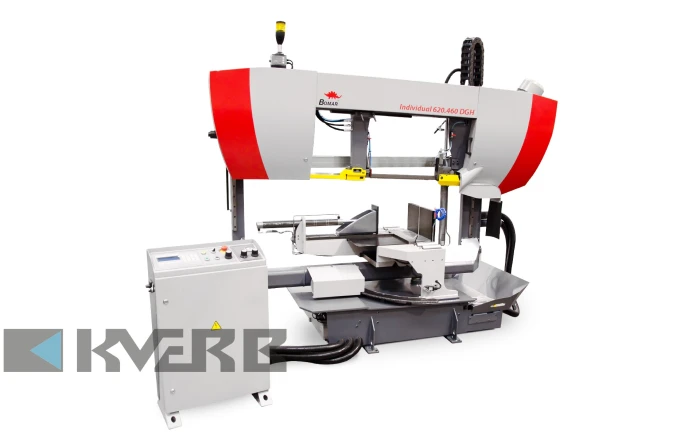 Band saw machine Bomar Individual 620.460 DGH is an automatic two-column band saw machine specially designed for performing double-sided angular cuts. Thanks to its sturdy frame construction and double linear guides, this machine ensures fast and precise cutting, making it ideal for working with both solid and profile materials.