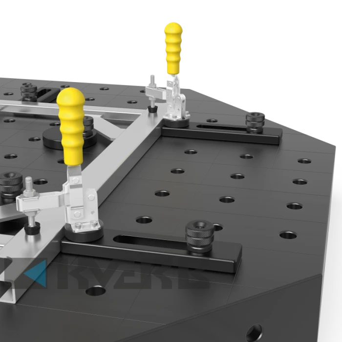 Універсальний упор 225 L фіксується з різних боків завдяки отвору системи або за допомогою отвору слота (в діапазоні 0-100 мм). Він також може використовуватися з призмами і адаптерами.