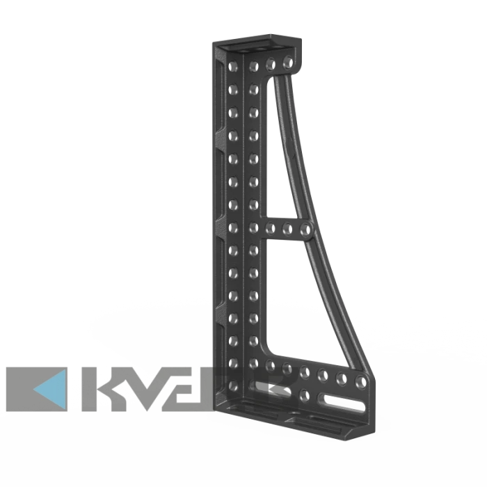 Кутовий кронштейн може бути зафіксований з трьох сторін. Він був спеціально розроблений для роботи з важкими деталями, використовується як для збільшення робочої поверхні, так і як упор. Для забезпечення найбільшої стабільності кутник виготовляється з високоякісного матеріалу GGG40. Рекомендується замовляти у парі.