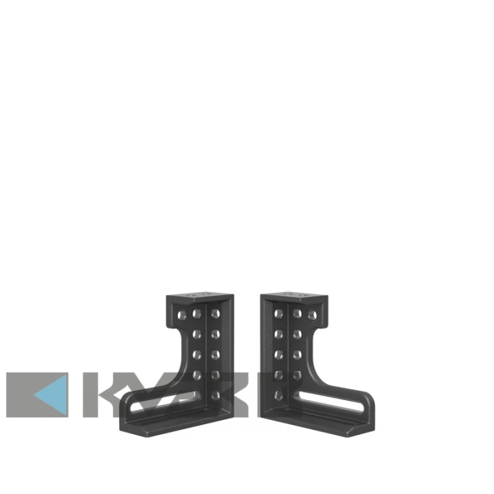 Кутовий кронштейн може бути зафіксований з трьох сторін. Він був спеціально розроблений для роботи з важкими деталями, використовується як для збільшення робочої поверхні, так і як упор. Для забезпечення найбільшої стабільності кутник виготовляється з високоякісного матеріалу GGG40. Рекомендується замовляти у парі.