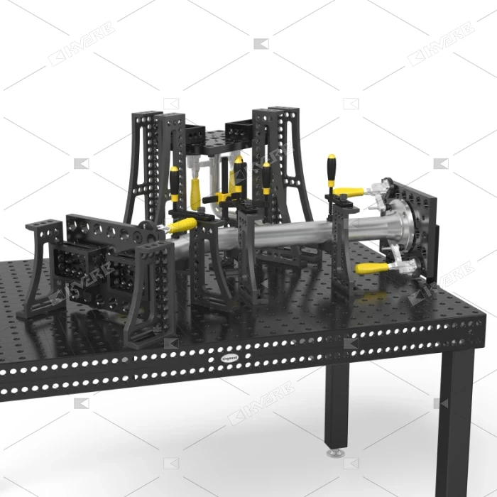 Крепежная плита присоединяется при помощи зажимных болтов. Фланцы могут быть размещены на плите при помощи фиксирующих болтов. Большие возможности открываются благодаря 28 мм отверстиям, которые позволяют закреплять различные элементы.