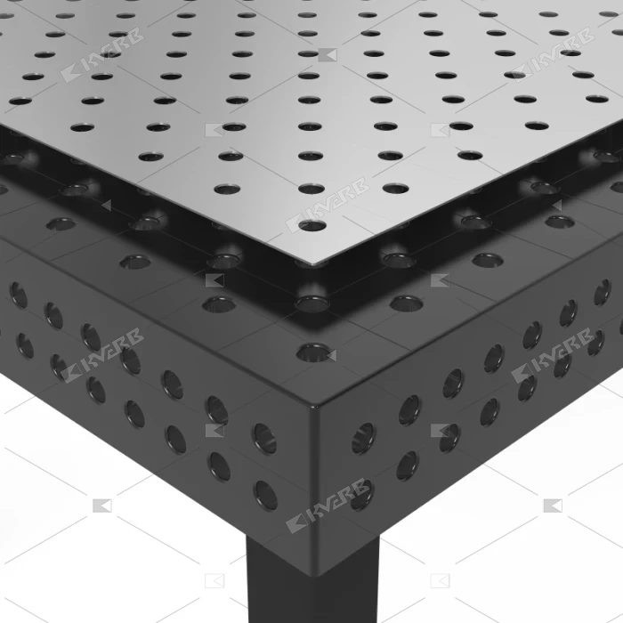 Перфорированный алюминиевый лист специально разработан для работы с нержавеющей сталью. Перфорированный лист отделяет черный металл от нержавеющей стали. Благодаря совпадению сетки отверстий образует точный настил. Изготовление листа с координатными линиями из нержавеющей стали - по запросу.
