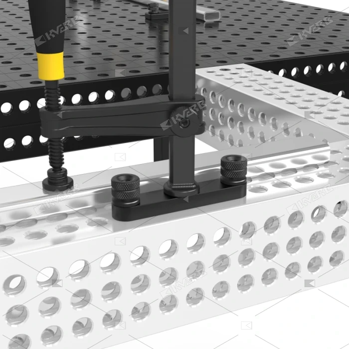 Адаптер можно закрепить на алюминиевом профиле с помощью быстрозажимных болтов без проема. Струбцина может быть вставлена в одно из отверстий адаптера, что обеспечит надежное крепление.