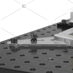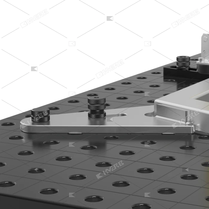 Позиционирующий болт фиксирует угольники, закрепленные всего лишь одним быстрозажимным болтом, и заменяет применение второго такого болта, что позволяет уменьшить стоимость оснастки. После фиксации образуются различные углы, например 90° или 45°.