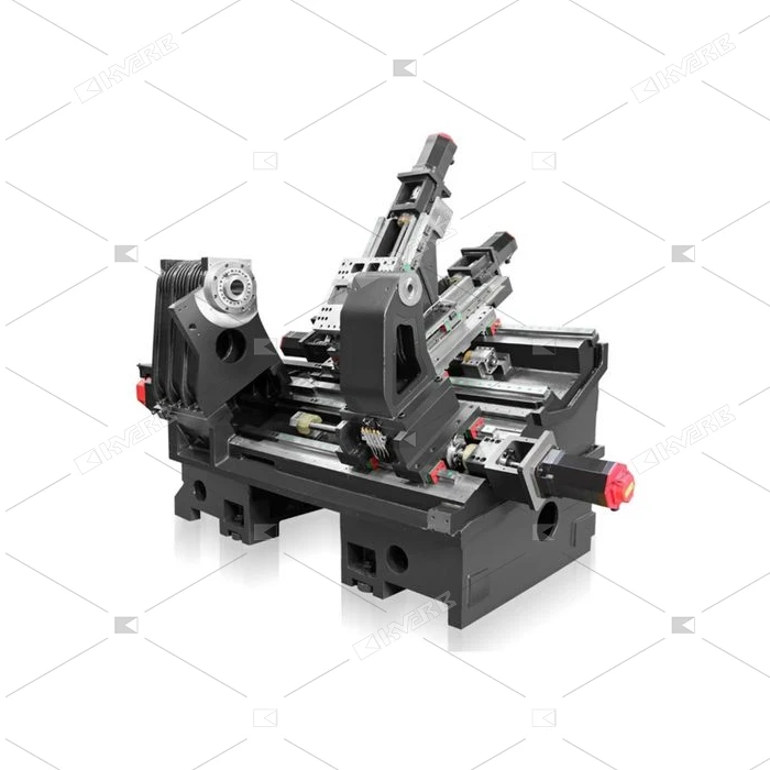 Наклонная станина под углом 30° упрощает обработку крупных деталей, улучшая отвод стружки.