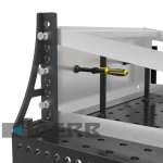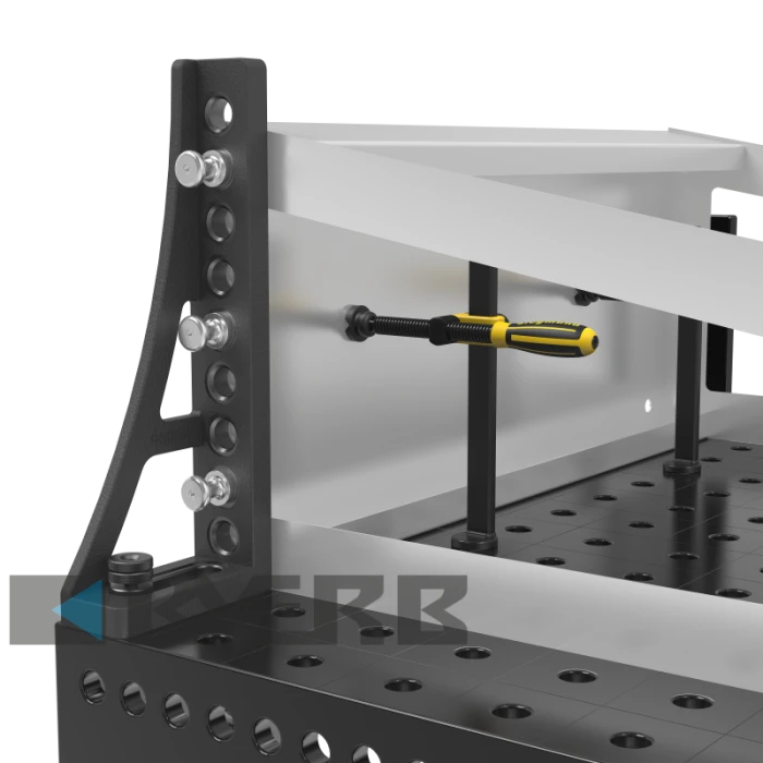Упорный и крепежный угольник 300 G / 500 G / 750 G может быть зафиксирован с любой из сторон благодаря наличию отверстий системы и отверстия слота. Угольник может быть использован для увеличения рабочей поверхности стола. Этот элемент изготавливается из высококачественного материала GGG40.