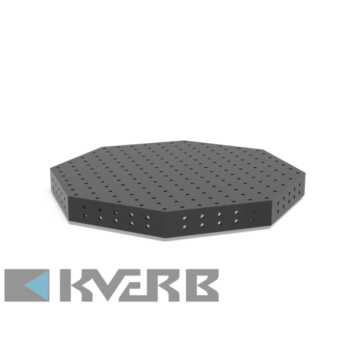 Сварочный стол SW 1500x150 с плазменным азотированием – восьмиугольная модель, предназначенная для работы в составе манипуляторов и роботизированных ячеек. Обеспечивает высокую точность закрепления деталей благодаря системе параллельных отверстий, аналогичной сварочным столам системы 22. Используется в автоматизированных сварочных и механообрабатывающих процессах.