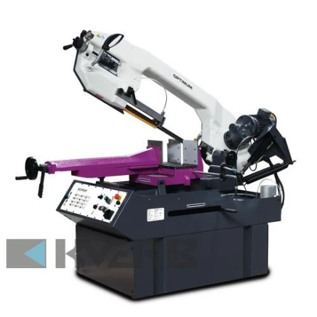 Станок підтримує дві швидкості пиляльної стрічки (35/70 м/хв), що дозволяє адаптувати його для обробки різних типів матеріалів. Кут різу регулюється в діапазоні від -45° до +60°, а підйом пиляльної стрічки здійснюється вручну. У комплект входить біметалева пиляльна стрічка, а також система охолодження, яка запобігає перегріву інструмента.