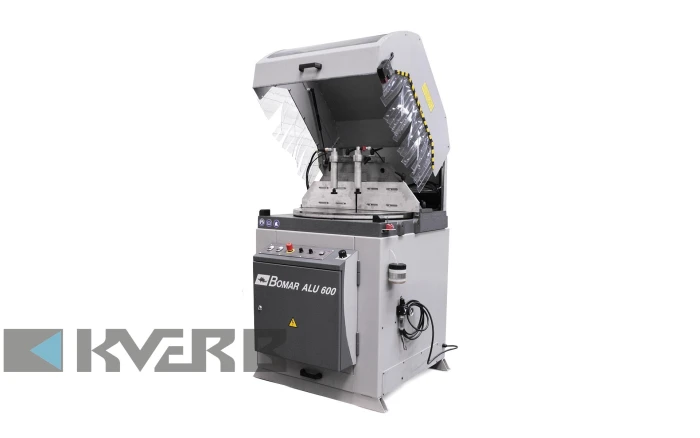 Стрічковопильний верстат Bomar AL 600 semi-automatic призначений для різки профільних і масивних матеріалів з алюмінієвих сплавів, міді та твердих пластиків. Машина оснащена вертикальними пневматичними зажимами для надійної фіксації матеріалу. Лівий зажимний механізм має зворотний клапан для компенсації падінь тиску повітря. Також є можливість установки горизонтальних зажимних пристроїв. Опускання циркулярного полотна регулюється пневмо-гідравлічно.