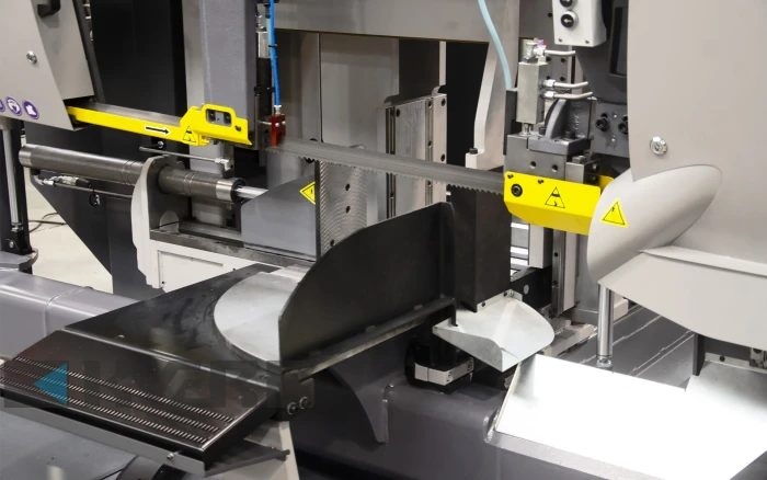 Повний автоматичний цикл роботи: після програмування довжини та кількості заготовок машина виконує цикл автоматично: зажим, різання, підйом пильного полотна та подачу матеріалу