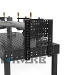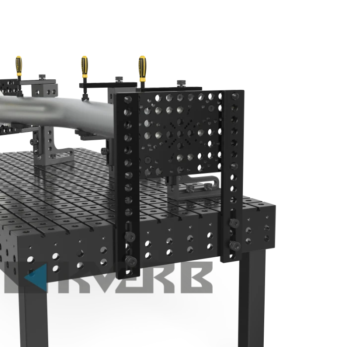 Універсальний упор спеціально розроблений для роботи з упорами і великими елементами. Додаткові можливості затискання забезпечуються завдяки поєднанню в ньому отворів системи і отвору слота (діапазон отвору слота 0-200 мм).